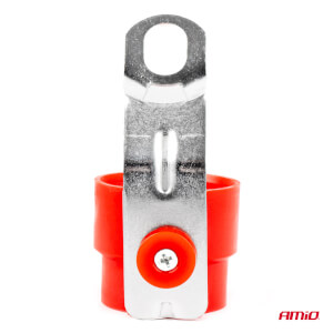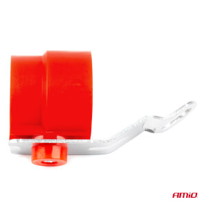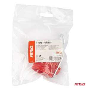 Praktični nosač utikača za prikolicu, crvene boje, dizajniran za montažu na okvir vozila ili u blizini priključne utičnice. Omogućuje sigurno i stabilno pohranjivanje električnog utikača (7-pinski ili 13-pinski) kada je parkiran ili kada nije spojen na vozilo.