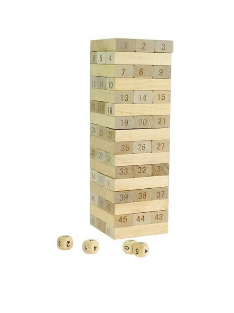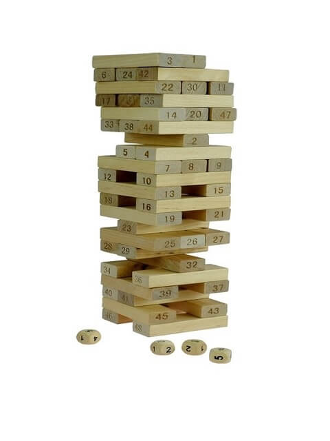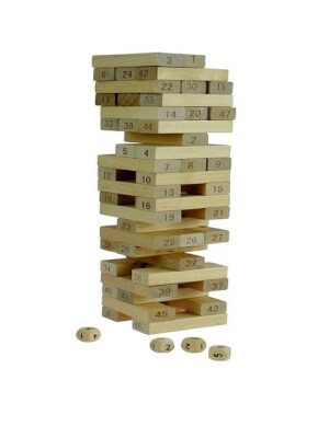 2. Drugi način upotrebe kockica je bacanje 4 kockice i zbrajanje brojeva, potom izvadite blok sa brojem koji je dao zbroj brojeva bacanjem kockica i stavite ga na vrh tornja kako se toranj ne bi srušio.