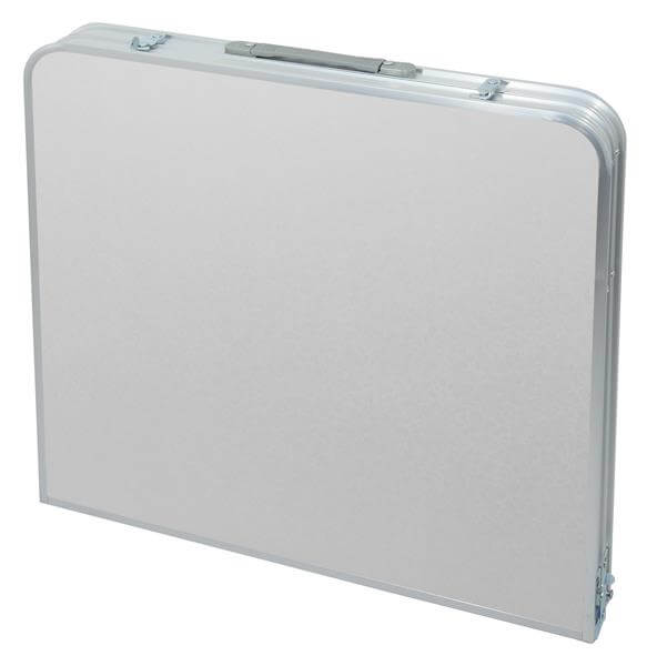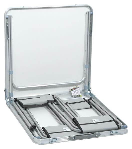 Za svoje dimenzije od 60 x 60 x 6,5 cm i težinu sa stolicama od 7,1 kg kada je sklopljen, stol je kompaktan i prenosiv zahvaljujući praktično postavljenoj ručki.